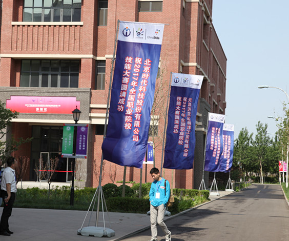 时代宣传旗飘扬在大赛演示中心