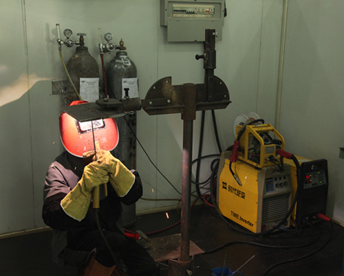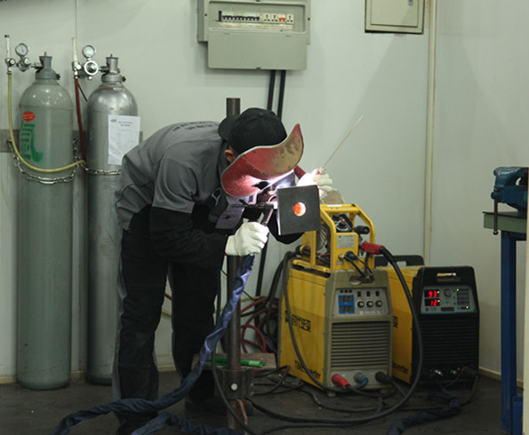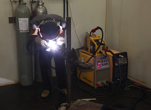 选手进行氩弧焊操作