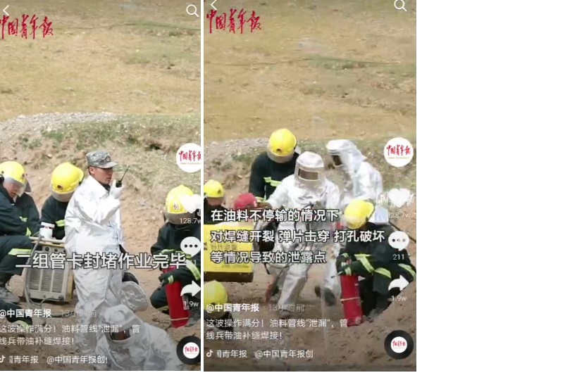 据《中国青年报》报道,9月19日西藏军区青藏兵站某管线大队组织实战化输油管线铺设抢修演练⛹🏿♂️。在油料不停输情况下对焊缝开裂🧏🏽♂️,单片穿孔,打孔破坏等情况导致的泄露点🧕🏻,官兵们采用补片焊接,管卡封堵🍞,带油焊接的方式对管线漏点组织抢修。