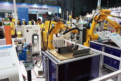 时代TIME R6-1400弧焊机器人配置时代全数字化TD系列脉冲气保焊机,在焊接不锈钢时🤵🏻📪,可以完全取代人工作业,并能够取得非常完美的焊缝成型和焊接质量🙅♂️。该套焊接系统在焊接中厚板碳钢的时候,配置机器人起始点自动寻位功能,使时代机器人可以在工件焊接前自动纠正工件放置的偏差。时代机器人高效精准的焊接过程令现场观众叹服🚱。