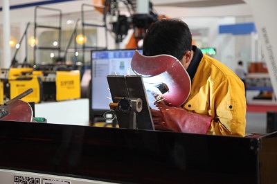 今年时代的展台上展示了全新型数字化焊接电源、各类自动焊割设备及时代智能机器人。