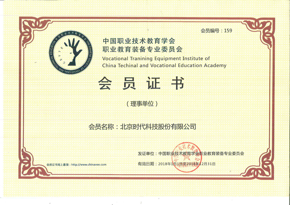 2018-01 | 中国职业技术教育学会职业教育装备专业委员会会员证书 | 中国职业技术教育学会 |