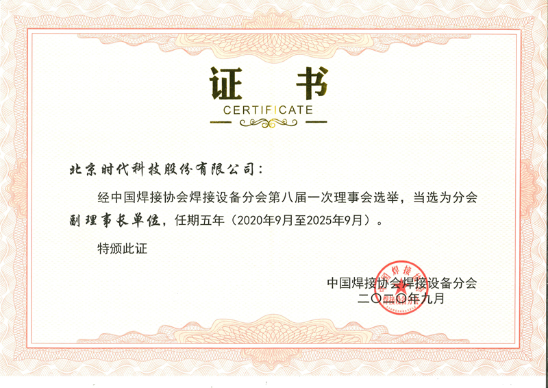 2020-09 | 中国焊接协会焊接设备分会副理事长单位 | 中国焊接协会 |