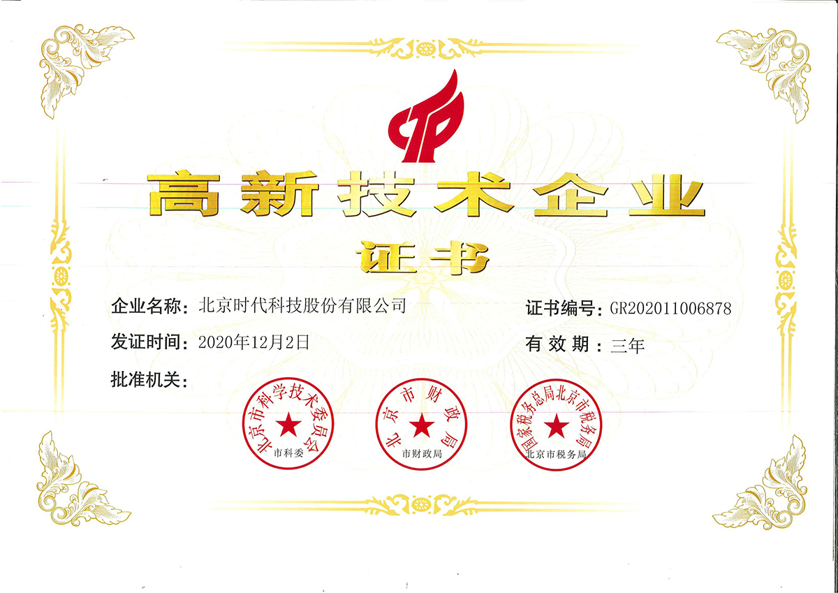 2020-12 | 高新技术企业证书 | 北京市科学技术委员会 |
