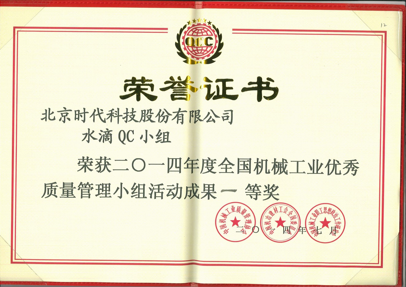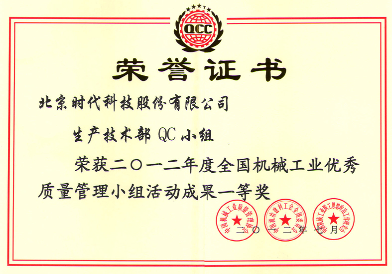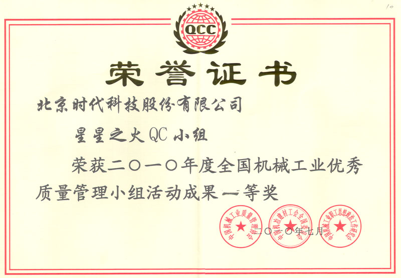 2010-07 | 全国机械工业优秀质量管理小组活动成果一等奖 | 中国机械工业质量管理协会 |
