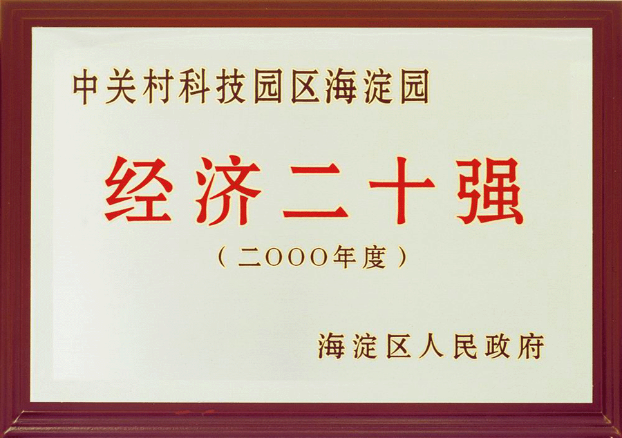 2002-04 | 中关村科技园区 2000 年度经济二十强企业 | 海淀区人民政府 |