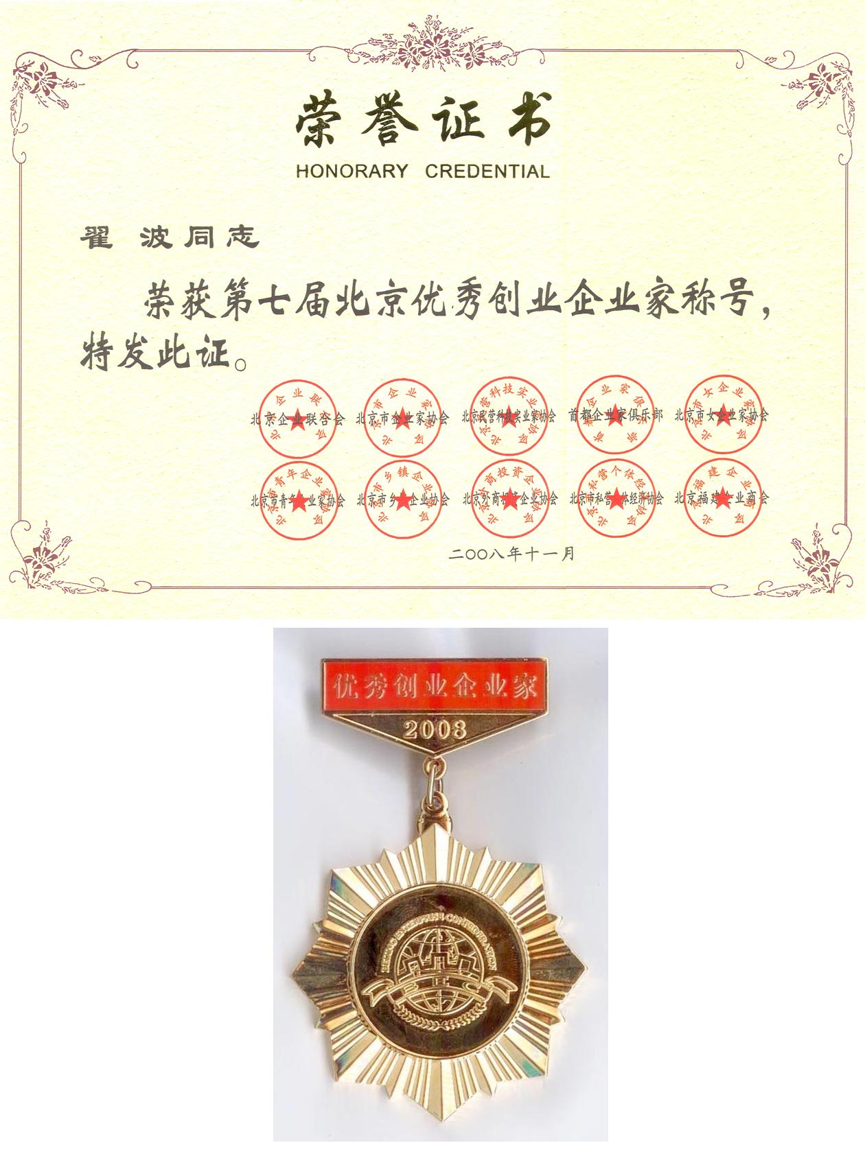 2008-11 | 第七届北京优秀创业企业家 | 北京企业联合会👩🏼⚕️、北京企业家协会 |