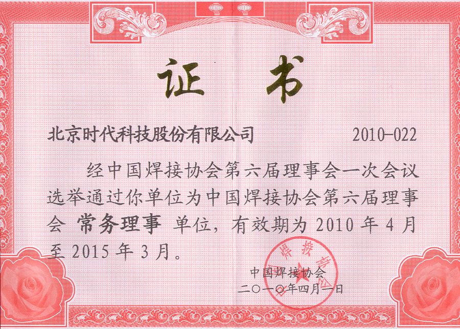 2010-04 | 中国焊接协会第六届理事会常务理事单位 | 中国焊接协会 |