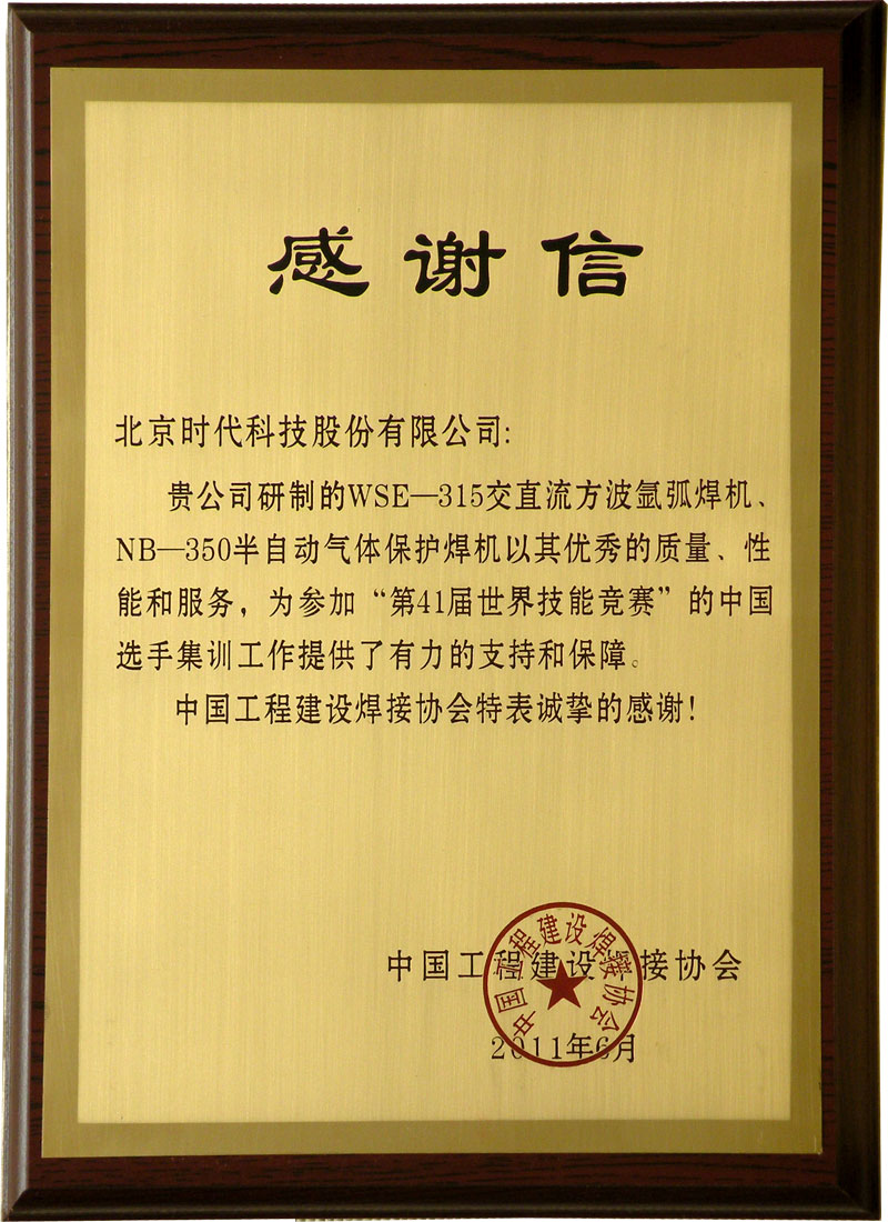 2011-06 | 参与世界技能大赛感谢信 | 中国工程建设焊接协会 |