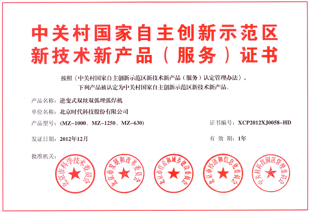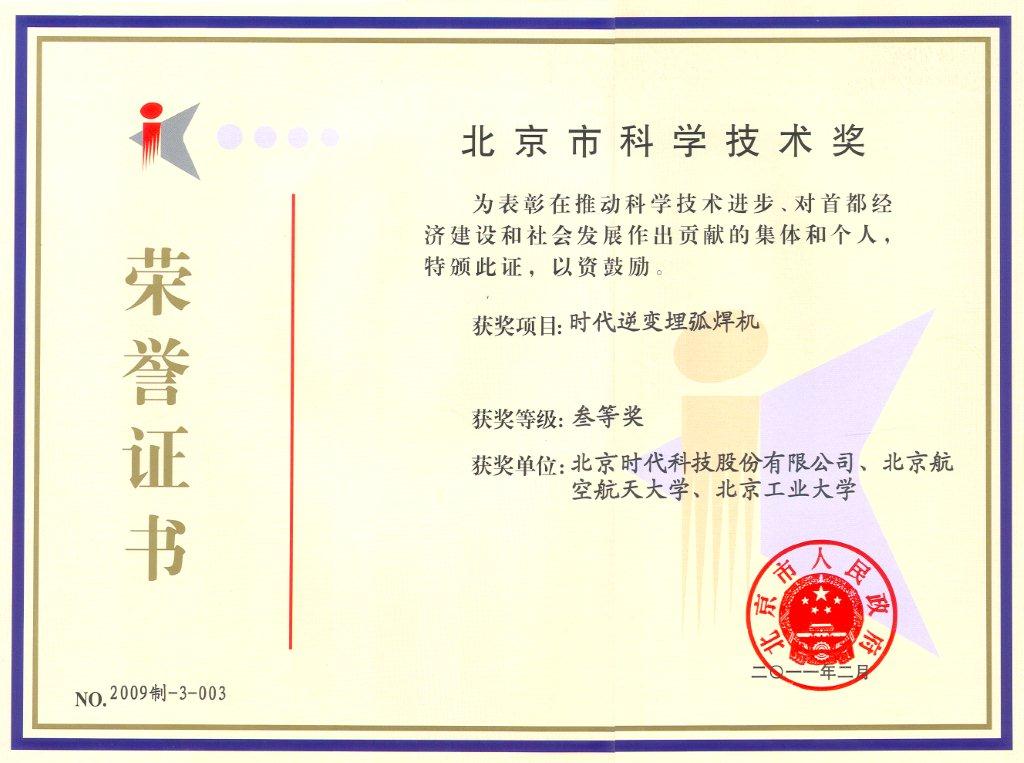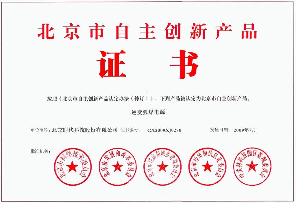 2009-07 | 北京市自主创新产品(逆变弧焊电源) | 北京市科学技术委员会 |