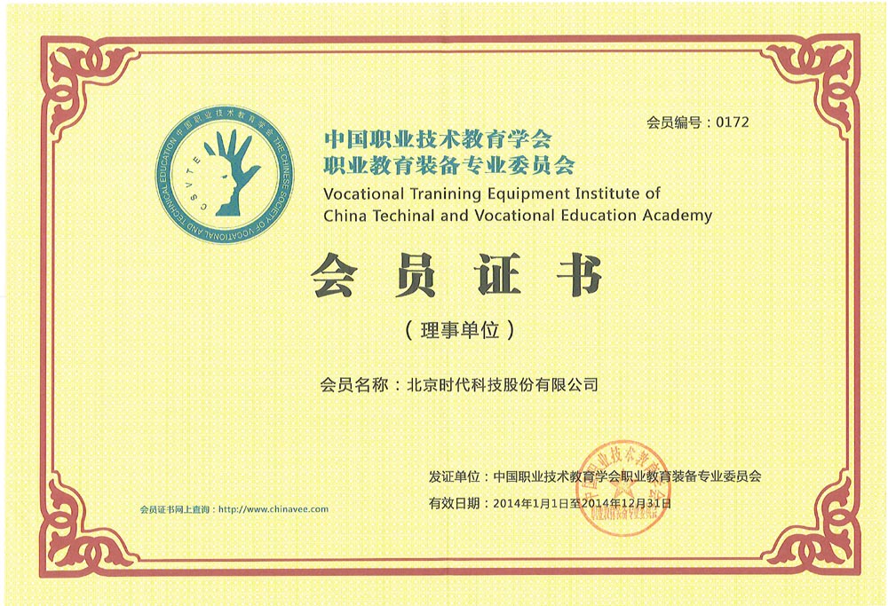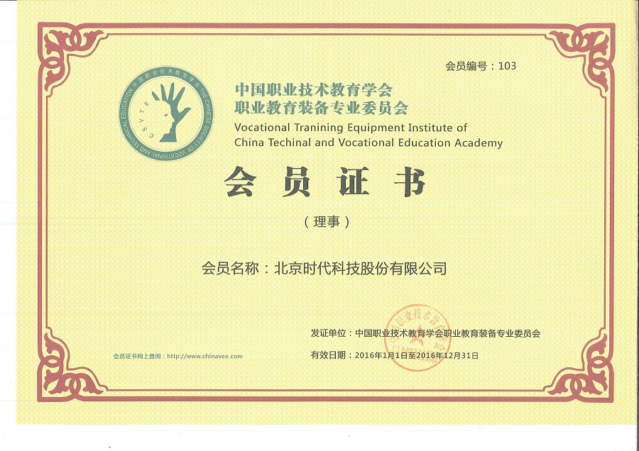 2016-03 | 中国职业技术教育学会职业教育装备专业委员会会员证书 | 中国职业技术教育学会职业教育装备专业委员会 |