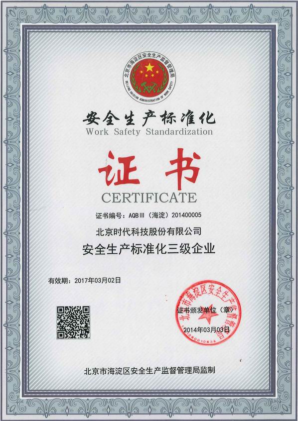 2014-04 | 安全生产标准化证书 | 北京市海淀区安全生产监督管理局 |