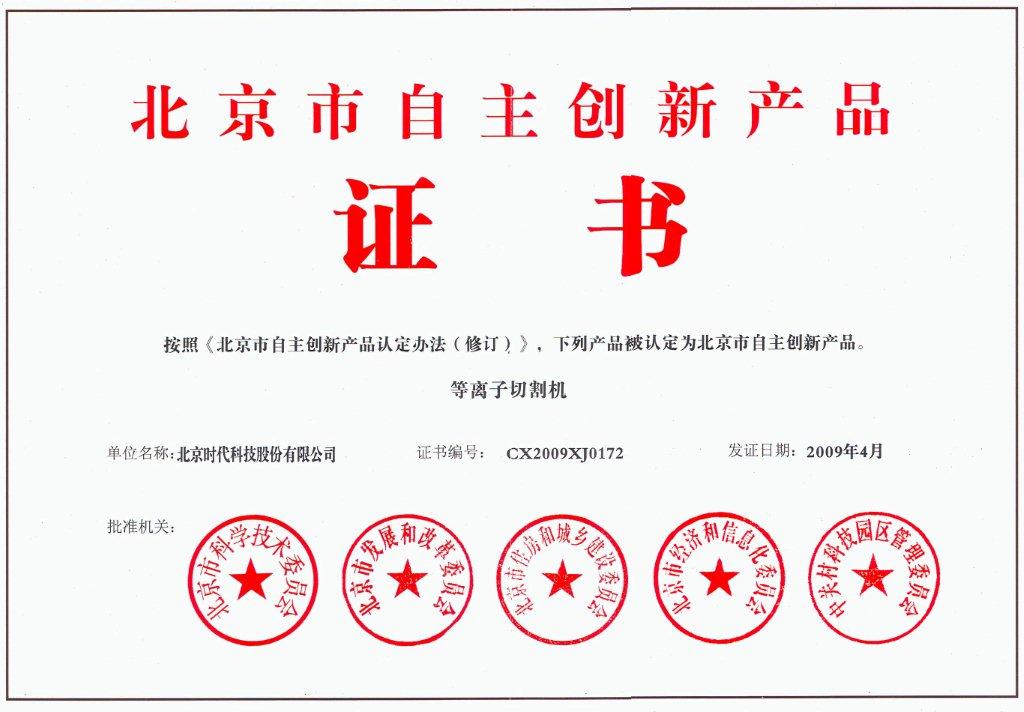 2009-04 | 北京市自主创新产品(等离子切割机) | 北京市科学技术委员会 |