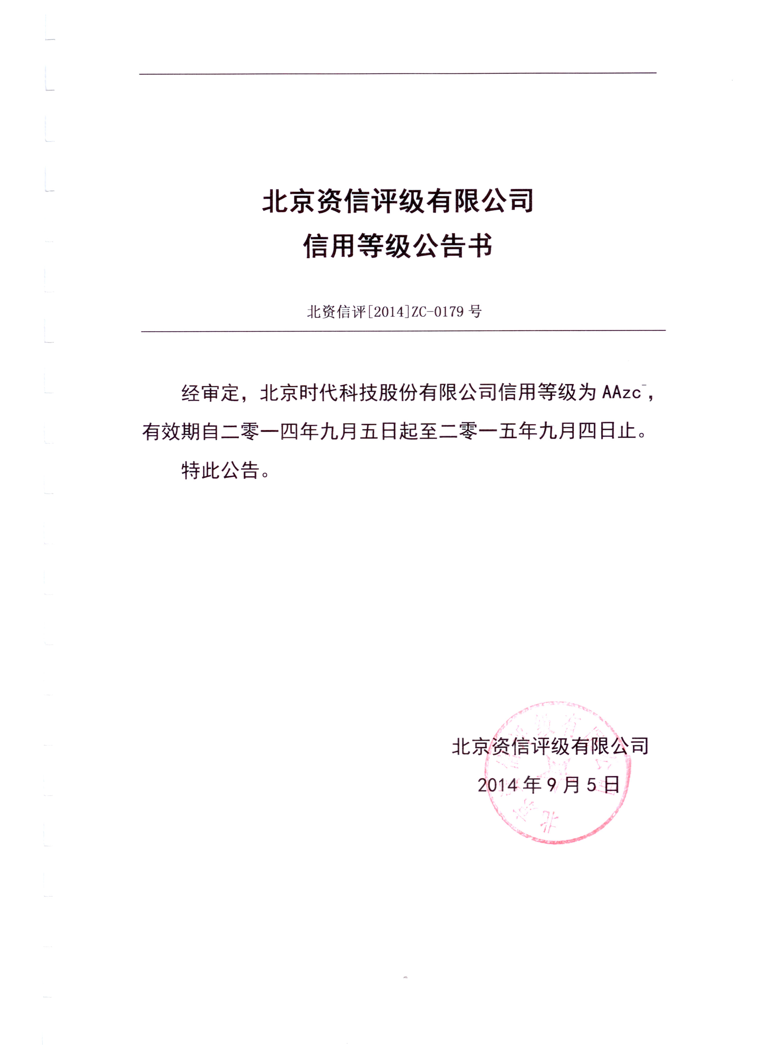 2014-11 | 彩神VI官网-(中国)百度百科信用等级公告书 | 北京资信评级有限公司 |