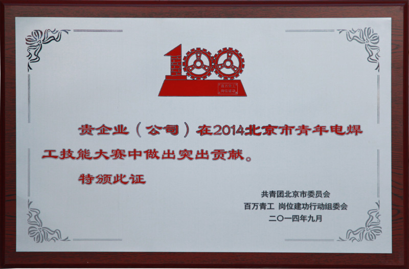 2014-12 | 北京市青年电焊工技能大赛 突出贡献奖 | 共青团北京市委员会 |