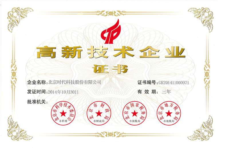 2015-01 | 高新技术企业 证书 | 北京市科学技术委员会 |