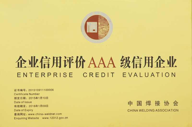2015-03 | 企业信用评价AAA级信用企业 | 中国焊接协会 |
