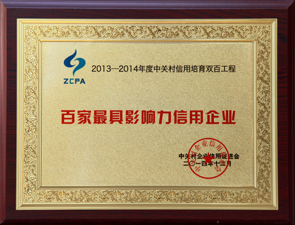 2014-12 | 百家最具影响力信用企业 | 中关村企业信用促进会 |