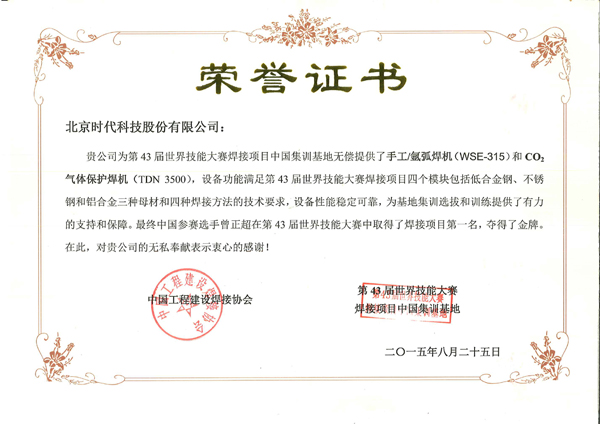 2015-08 | 第43届世界焊接大赛焊接项目集训用机 | 中国工程建设焊接协会 |