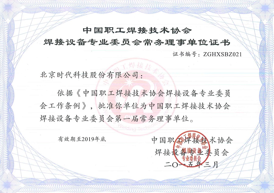 2016-04 | 中国职工焊接技术协会 焊接设备专业委员会常务理事单位证书 | 中国职工焊接技术协会 焊接设备专业委员会 |