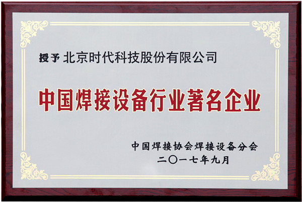 2017-09 | 中国焊接设备行业著名企业 | 中国焊接协会焊接设备分会 |