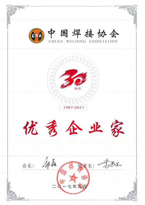 2017-09 | 中国焊接协会 优秀企业家 | 中国焊接协会 |