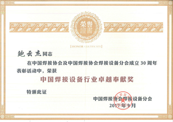 2017-09 | 中国焊接设备行业卓越奉献奖 | 中国焊接协会焊接设备分会 |